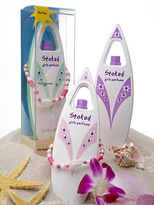 BStoked, the fragrance for girls, is a unique blend of topnote scents like Clementine, pineapple, yellow freesia and neroli offer a succulent signature. A whisper of tropical orchids, lotus blossom, pink muguet and jasmine calm the senses while sandalwood, creamy coconut and musk create a sensual finish. A surf slang term that has endured the passing of time and style, Stoked means "excited, pleased, happy or thrilled.