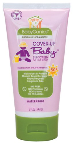 Fun in the sun shouldn’t end with a sting! BabyGanics’ Cover-Up Baby Sunscreen is specially formulated to help protect the tiniest of tots and retains its SPF strength for up to 80 minutes - even after a dip in the kiddie pool (now that’s what we call waterproof). Available in a convenient 2 oz travel size BabyGanics’ mineral based 50+SPF lotion provides broad spectrum UVA/UVB protection and even moisturizes as it protects. So go ahead and use it everywhere….face and body – BabyGanic’s has your little one covered!Hypoallergenic, Fragrance Free, Pediatrician & Dermatologist TestedNO PABA, NO Parabens, NO Sulfates, NO Phthalates
